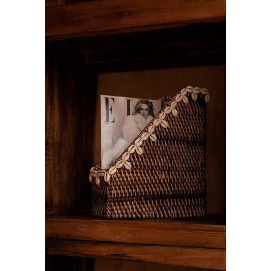 Rotan tijdschriftenhouder met schelprand