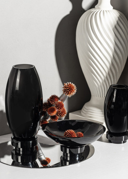 Ovale zwarte glazen vaas