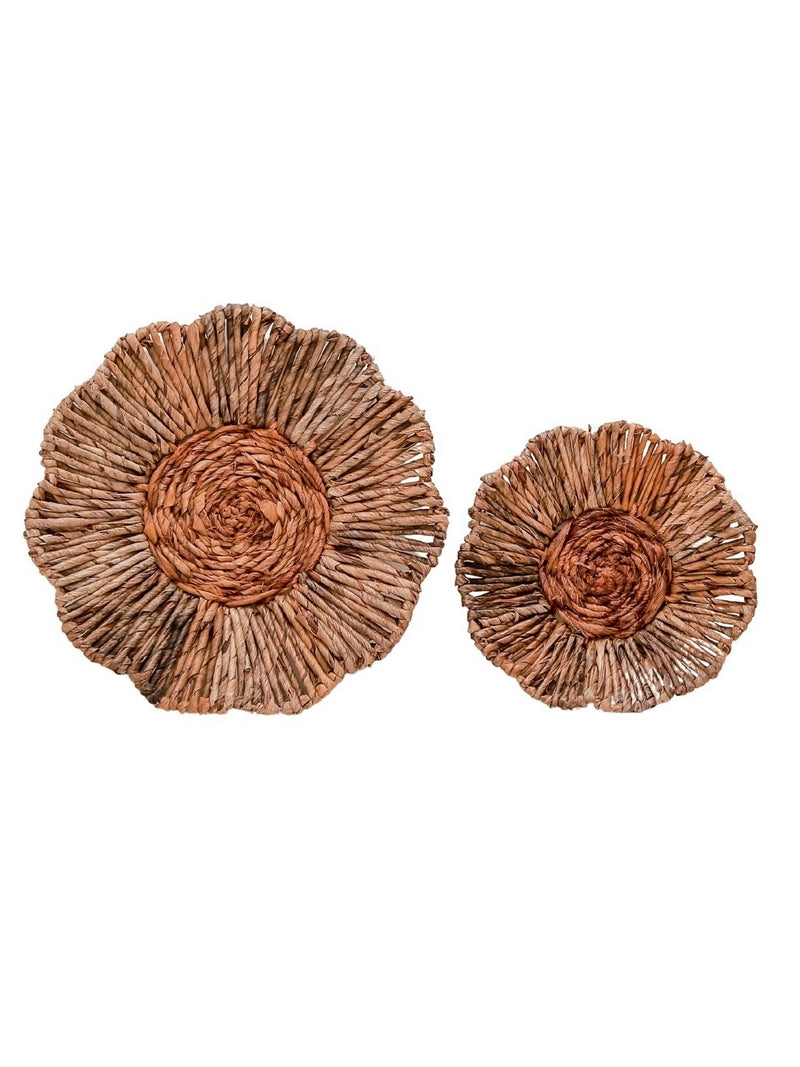 Voeg een vleugje bohemian charme toe aan je tafelsetting met onze boho bruine placemats van bananenvezel. Beschikbaar in twee maten - SL (30 cm diameter) en L (40 cm diameter) - bieden deze veelzijdige stukken een organische en natuurlijke uitstraling. De warme bruine tinten passen prachtig bij onze boho producten, zoals onze sidetables en schalen. Gebruik ze als placemats om je eettafel te verfraaien of als decoratieve muurschijven voor een boho accent in elke ruimte. Wist je dat je deze ook als muurschijf kan gebruiken?
