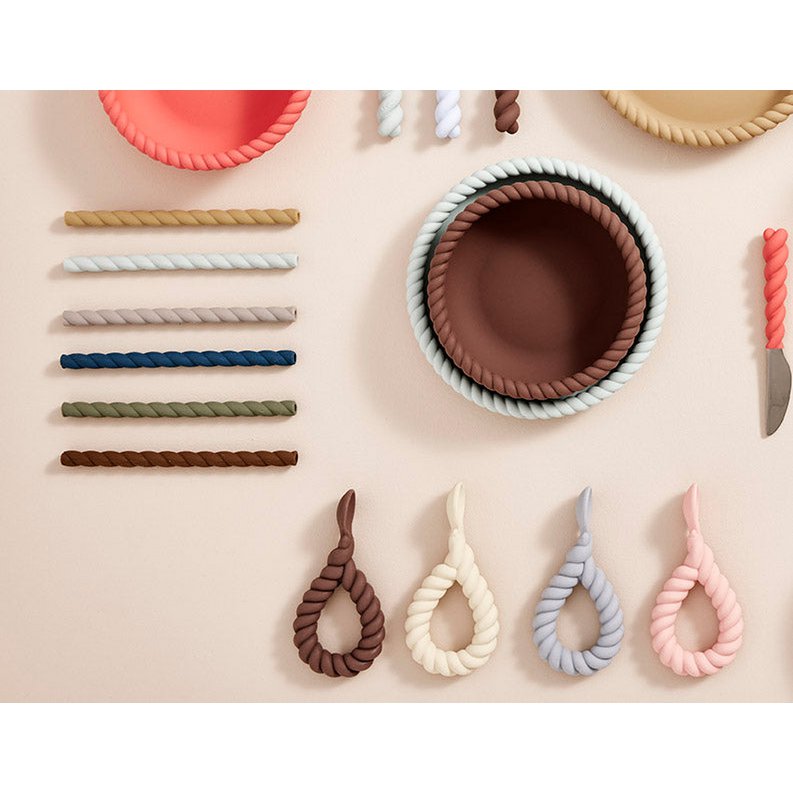 Onze blauw en bruine zachte platen en kommen brengen rust en zachtheid aan tafel. Geïnspireerd op de vormen van marshmallows hebben ze een subtiel gedraaide rand en een verfijnde, natuurlijke uitstraling. Het siliconen materiaal voelt soepel aan en maakt de set ideaal voor dagelijks gebruik, zeker met kleine handjes in huis.