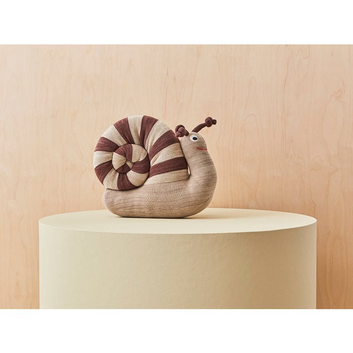 Maak kennis met onze katoenen knuffel Sally Slak. Deze lieve, zachte slak is gemaakt van hoogwaardig katoen en gevuld met gerecycled polyester voor een heerlijk knuffelbaar gevoel. Sally is ontworpen met oog voor detail en straalt een natuurlijke, rustgevende charme uit, perfect voor in de kinderkamer of als decoratief accent in huis.