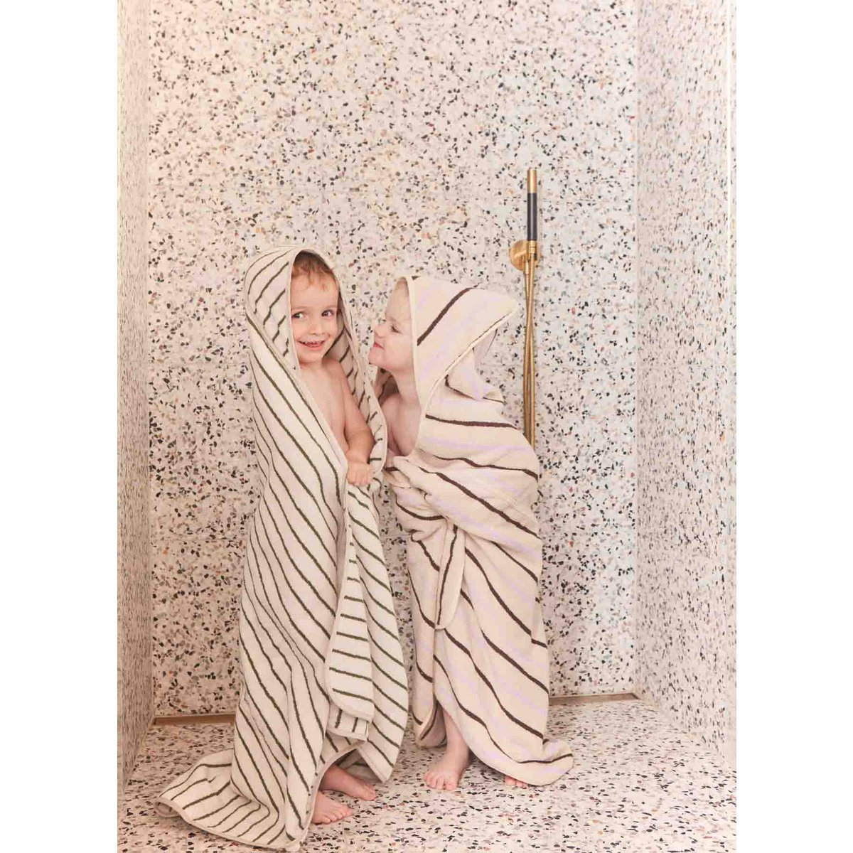 De Raita handdoek met capuchon is ontworpen met eenvoud, comfort en zachtheid in gedachten. Het gestreepte dessin geeft de handdoek een tijdloze uitstraling, terwijl de praktische capuchon zorgt dat je kind heerlijk warm blijft na het badderen of zwemmen.