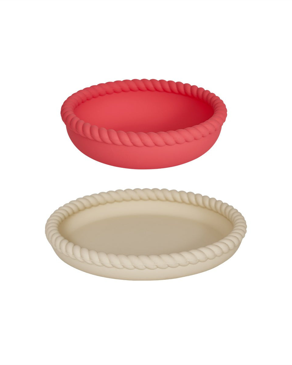 Onze rood en witte zachte borden en kommen brengen warmte en vrolijkheid aan tafel. Geïnspireerd op de ronde, zachte vormen van marshmallows hebben ze een subtiel gedraaide rand en een frisse, eigentijdse uitstraling. Het soepele siliconen voelt prettig aan en maakt de set ideaal voor dagelijks gebruik, zeker voor gezinnen met jonge kinderen.